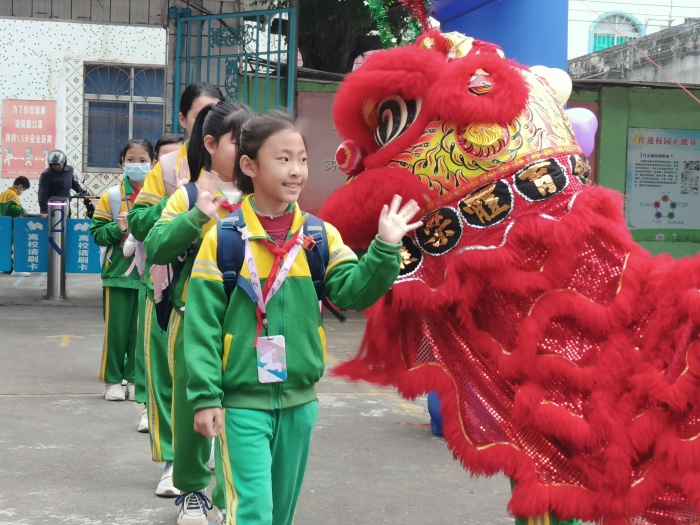 帶著愛,帶著期待。老師們提前布置好儀式感滿滿的教室,等待著學生的歸來。孩子們入班后,各班老師通過抽紅包,玩游戲的活動開展了迎新活動,展“兔”福,享“兔”運。老師們?yōu)閷W生準備的特殊的紅包里,塞著的是老師們滿滿的愛意。因為新鮮,每個孩子對自己的紅包都充滿期待,在打開紅包的過程中格外激動,那一張張笑臉是新學期最美麗的風景。學校的醒獅隊也來到了各個班級為開學采青,將傳統(tǒng)文化種植到學生心里。