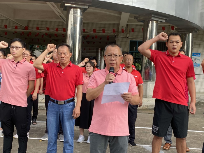 接著,吳平老師帶領(lǐng)全體教師宣誓。新的學(xué)期,海洲中學(xué)全體老師將繼續(xù)秉持立德樹人、無私奉獻(xiàn)的精神品質(zhì),為人師表、關(guān)心學(xué)生,鑄造海中更美好的明天。而后,是學(xué)生代表發(fā)言,三4班李凱琳同學(xué)代表初三學(xué)子,道出新學(xué)期的奮斗目標(biāo),激勵全體海中學(xué)子排除萬難,奮勇爭先。