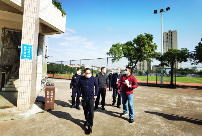 當(dāng)天上午,古鎮(zhèn)鎮(zhèn)教育和體育事務(wù)中心副主任林梗卿,孔國范老師會(huì)同古鎮(zhèn)鎮(zhèn)公安分局楊恩太等四名警官,來到海洲中學(xué)進(jìn)行創(chuàng)建更高水平的“安全文明校園(平安校園)”考評驗(yàn)收。