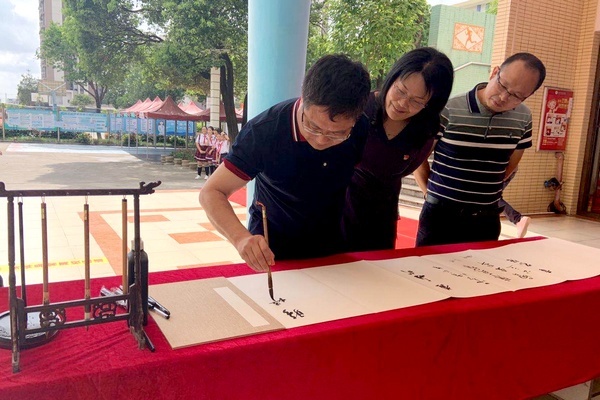 據(jù)悉,小欖豐華學(xué)校的毛筆書(shū)法教育開(kāi)展得比較早。早在2009年該校以校園書(shū)法社團(tuán)活動(dòng)的形式推進(jìn)校園書(shū)法教育。后來(lái),該校又采取聘請(qǐng)專(zhuān)業(yè)老師、外聘專(zhuān)家、培養(yǎng)一專(zhuān)多能的教師等舉措,落實(shí)“全員書(shū)法”,行政、老師、學(xué)生齊上陣,帶動(dòng)了許多家長(zhǎng)也參與到學(xué)書(shū)法中來(lái)。小欖豐華學(xué)校的書(shū)法教育的步伐越走越堅(jiān)定,路子越走越寬,成果不斷涌現(xiàn)。師生在市鎮(zhèn)級(jí)以上的各級(jí)書(shū)法專(zhuān)業(yè)大賽中每年都有超過(guò)300人次的獲獎(jiǎng)。先后在北京太廟、廣東省立圖書(shū)館、中山市美術(shù)館、小欖鎮(zhèn)藝術(shù)館等場(chǎng)所,舉辦了“翰墨豐華”系列師生書(shū)法展多場(chǎng),書(shū)法教育碩果累累。今天,翰墨豐華·中山市小欖豐華學(xué)校2020屆畢業(yè)生代表書(shū)法作品展的成功舉辦,是該校書(shū)法藝術(shù)教育進(jìn)程中的一個(gè)美麗的注腳,是該校書(shū)法教育的又一個(gè)可喜的成果。