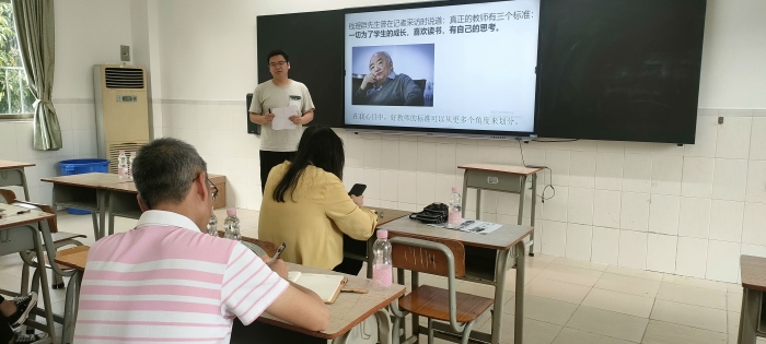最后陳倩玉老師:在第二個標準“喜歡讀書”談到重新營造自由讀書的條件,環(huán)境和氣氛。語文學科有一節(jié)閱讀課,環(huán)境、氣氛都具備了,但是個別同學還是讀不進去,營造一個整體的讀書的環(huán)境、氛圍是非常重要的。錢理群先生還提到“除了引導學生讀紙質的書,還要創(chuàng)造條件,引導學生利用網(wǎng)絡進行學習,”但是,網(wǎng)絡學習或者閱讀都需要學生有一定的自律性,而本校大部分學生的自律性較差,所以利用網(wǎng)絡學習還是值得我們繼續(xù)思考。