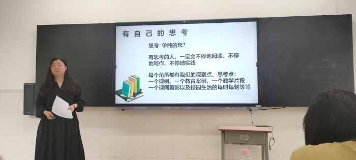 接下來開啟了讀書分享會。徐冬老師分享道:第一,每一個孩子的心里都有善的種子,不要用昨天的眼光看待今天的孩子。第二,教師應該看到孩子的潛力,發(fā)掘孩子的潛力,看到孩子身上的閃光點并讓他們發(fā)熱發(fā)亮。第三,教育是理想主義的思維,要培養(yǎng)人的信仰和信念。關于讀書,不需要太深,但要什么都讀一點,懂一點。書讀得要雜,讀雜之后,你的知識就會通。通過讀書,努力成為一個有影響力的老師。