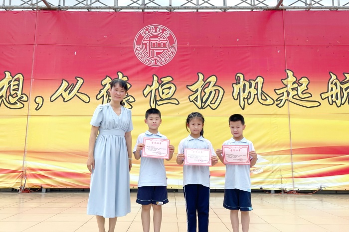 在莊嚴(yán)的升旗儀式后,由德恒學(xué)校團(tuán)委書記宣讀了獲獎名單,梁潔老師為獲獎教師和同學(xué)頒發(fā)榮譽(yù)證書。