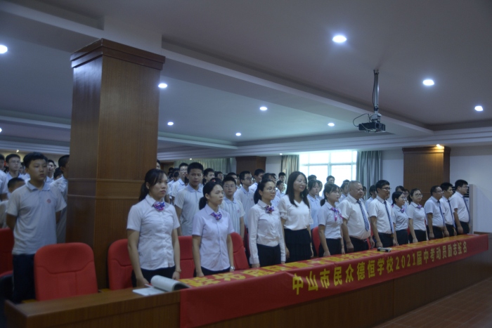 為激發(fā)學(xué)生的競爭意識和拼搏精神,促使初三學(xué)生以更好的心態(tài)投入到學(xué)習(xí)中去,9月18日下午14點,中山市民眾德恒學(xué)校在多媒體會議室隆重舉行了2021屆中考動員誓師大會。大會由姚若彤老師主持。