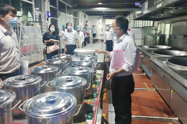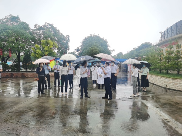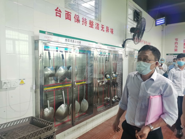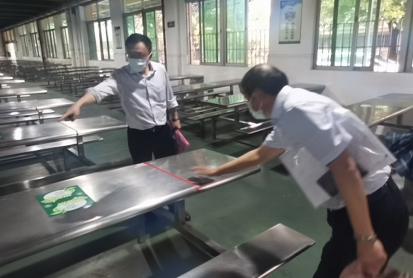 當(dāng)天,德恒校園里流連春光,舍不得凋零的幾支紫荊花被南國(guó)的驟雨擊落一地,落英繽紛,美麗極了。下午2:00,德恒學(xué)校全體行政滿(mǎn)懷信心在校門(mén)口列隊(duì)迎接市高三、初三復(fù)學(xué)防控工作專(zhuān)班的到來(lái)。2:30左右,市教育工委廖誠(chéng)副書(shū)記帶領(lǐng)的驗(yàn)收專(zhuān)班,在民眾鎮(zhèn)黨委劉釗妍委員和民眾鎮(zhèn)教指中心黃海文主任的引領(lǐng)下,來(lái)到德恒學(xué)校。一行人在學(xué)校門(mén)口測(cè)完體溫和進(jìn)行必要消毒后,隨即開(kāi)始了對(duì)德恒學(xué)校高三、初三復(fù)學(xué)防控準(zhǔn)備工作的實(shí)地查驗(yàn)。驗(yàn)收專(zhuān)班一行人首先來(lái)到學(xué)校健康觀(guān)察室,查看了觀(guān)察室的防疫物資配備,檢查了消毒通風(fēng)情況。接著來(lái)到學(xué)生宿舍,看到德恒學(xué)校學(xué)生宿舍干凈整潔,通風(fēng)良好,了解了學(xué)校初三、高三學(xué)生全部寄宿,每間宿舍只安排三名學(xué)生等情況。隨后查看了食堂操作間和學(xué)生餐廳,他們不僅對(duì)食堂的整潔規(guī)范給予了高度評(píng)價(jià),還特別對(duì)學(xué)校安排班主任和行政陪同就餐管理學(xué)生的這個(gè)細(xì)節(jié)提出了贊賞。再接著一行人查看了學(xué)校保健室、防疫物資儲(chǔ)備室、教室。最后,就地在備用教室召開(kāi)了反饋會(huì)。在會(huì)議中,廖書(shū)記說(shuō),他幾年前來(lái)過(guò)此地,但當(dāng)時(shí)還不叫德恒學(xué)校,今天再到這里,他對(duì)德恒兆業(yè)教育集團(tuán)接收這所學(xué)校后帶來(lái)的巨大變化感到驚喜和意外。他同時(shí)強(qiáng)調(diào),德恒學(xué)校這次高三、初三復(fù)學(xué)防控準(zhǔn)備工作完成得非常好,要學(xué)校及時(shí)總結(jié)做法和經(jīng)驗(yàn),并將其推廣到后續(xù)其他年級(jí)的復(fù)學(xué)防控準(zhǔn)備工作中,甚至要在民眾鎮(zhèn)乃至中山市加以推廣,并最后激勵(lì)德恒全體行政要再接再厲。