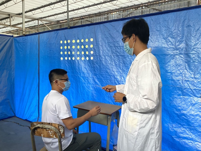 在體溫監(jiān)測(cè)演練過(guò)程中,發(fā)現(xiàn)了一名體溫超過(guò)37.3度,身體不適的疑似癥狀“學(xué)生”。引導(dǎo)老師迅速引導(dǎo)至健康觀察室,再由冼健怡校醫(yī)對(duì)其重新測(cè)量體溫,并對(duì)其身體狀況做初步的判定,仔細(xì)詢問(wèn)14天內(nèi)有無(wú)疫情重點(diǎn)地區(qū)旅居史、途經(jīng)史或有確診、疑似病例接觸史,再進(jìn)行分級(jí)上報(bào)等各項(xiàng)處置工作,詳細(xì)記錄每個(gè)場(chǎng)景中可能出現(xiàn)的意外狀況。