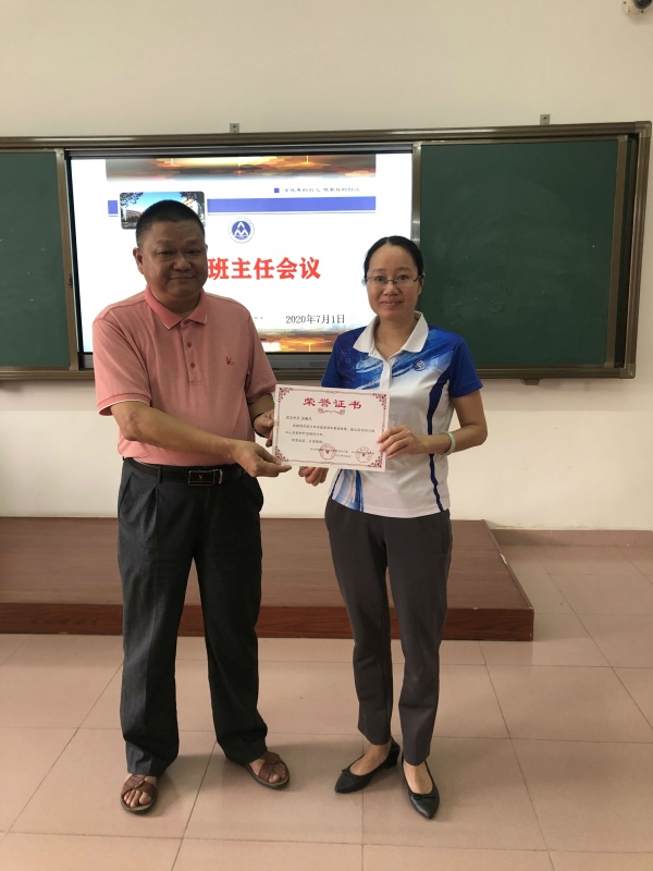 最后,吳美霞老師替張馨月同學(xué)接受胡校長頒發(fā)的市自強(qiáng)好少年和自強(qiáng)少年標(biāo)兵獎(jiǎng)項(xiàng)。