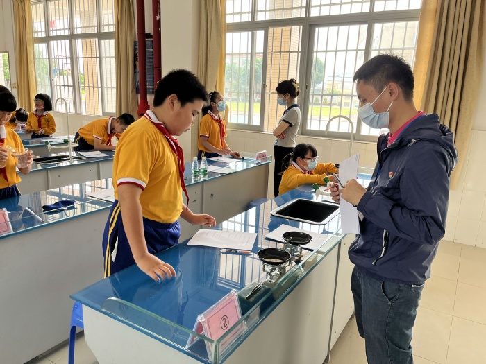 根據(jù)市教體局《關(guān)于2021-2022學(xué)年度中山市中小學(xué)實(shí)驗(yàn)操作考核工作的通知》文件精神,結(jié)合本次疫情防控工作要點(diǎn)以及南朗鎮(zhèn)實(shí)際情況的統(tǒng)一部署,2022年5月18日下午,南朗小學(xué)五年級(jí)五個(gè)班一共243位同學(xué)進(jìn)行了科學(xué)實(shí)驗(yàn)操作的考核。本次考核工作從下午2:30開始, 16:30結(jié)束,在沉著、有序、嚴(yán)謹(jǐn)?shù)姆諊?,五年?jí)全體學(xué)生一次性通過了本次的考核。整個(gè)過程緊湊流暢,學(xué)生認(rèn)真自信,成績優(yōu)異,這是南朗小學(xué)領(lǐng)導(dǎo)、教師、同學(xué)們的共同努力的成果。