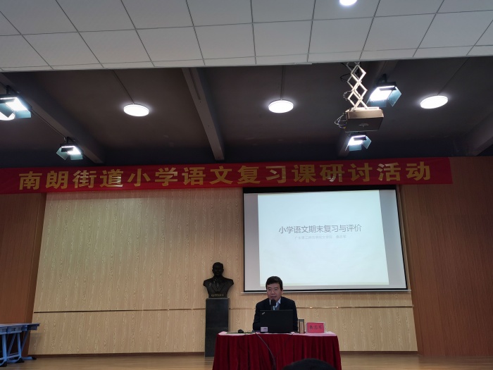為有效開展語文復習工作,提高期末復習效率,全面提高小學語文教學質量,2021年12月28日上午,南朗街道教育和體育事務中心在南朗小學禮堂舉行了小學語文復習研討活動?;顒友埩藦V東第二師范學院文學院院長桑志軍教授進行指導,中山市督學、南朗街道教育與體育事務中心副主任黃嘉宏及南朗街道小學語文老師近70人參加了此次活動。