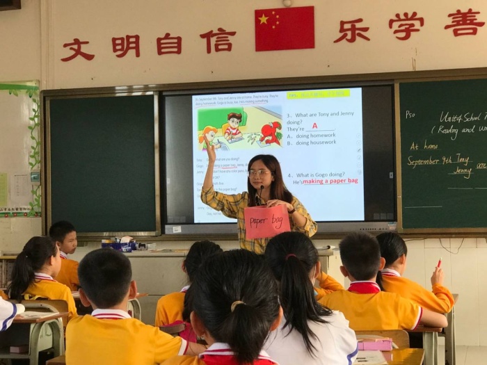 活動首先由該校陳洋帆老師和陳鳳老師進(jìn)行授課。第一節(jié),陳洋帆老師的教學(xué)內(nèi)容為:Unit 3 Dates More Reading and writing,而第二節(jié)陳鳳老師上課的內(nèi)容為Unit 4 School things Reading and writing,兩個老師上課的課型都是閱讀課,她們從知識、語言、東西方文化等各方面來學(xué)習(xí)短文,對于新詞的處理、信息的滲透,她們能做到潤物細(xì)無聲,并且教會同學(xué)們學(xué)習(xí)閱讀短文的方法,如劃出關(guān)鍵詞,從圖片中獲取信息等。