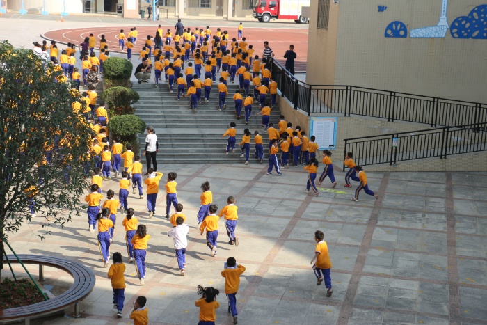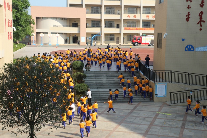 人數(shù)清點工作完成后,南朗小學(xué)德育副校長肖凱銓進(jìn)行發(fā)言。他說道:同學(xué)們都在規(guī)定時間內(nèi)完成了撤離,達(dá)到了預(yù)定效果。同時,也指出部分同學(xué)演習(xí)時不夠逃生動作不夠規(guī)范,需要進(jìn)一步加強。同時肖副校長還和同學(xué)們分享了四川汶川大地震時綿陽市安縣桑棗鎮(zhèn)桑棗中學(xué)在發(fā)生地震的時候,僅僅用時1分36秒,全校2300多名師生,從不同的教學(xué)樓和不同的教室中,全部沖到操場,以班級為組織站好。最后肖副校長總結(jié):“安全源于麻痹,事故出于麻痹。”他希望同學(xué)們要認(rèn)真對待每一次安全演練,當(dāng)安全事故來臨時,才不會慌亂,才會有事倍功半的效果。