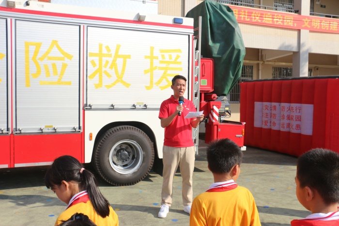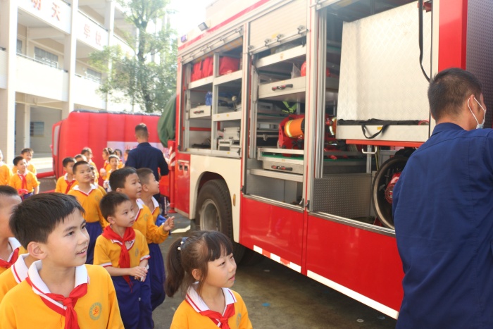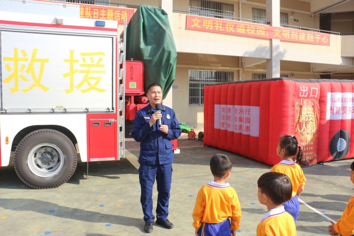 隨后,南朗鎮(zhèn)專職消防隊何龍指導(dǎo)員對本次演習(xí)進(jìn)行點評。首先,他肯定了同學(xué)們的表現(xiàn),接著通過介紹幾起發(fā)生在今年的消防事故來提醒同學(xué)們一定要重視消防知識的學(xué)習(xí),形成良好的安全意識。為了加強同學(xué)們的應(yīng)急能力,學(xué)校組織了學(xué)生參觀了消防車的裝備以及參加“小黑屋”的體驗活動。