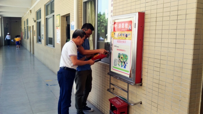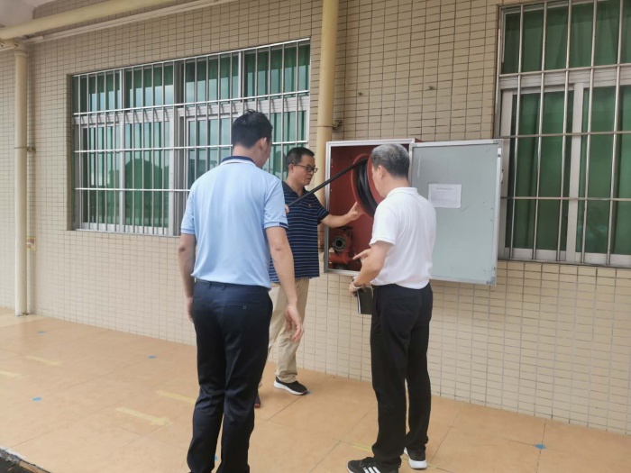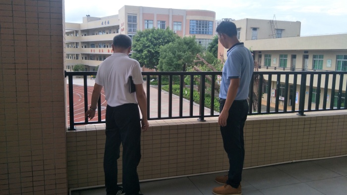 陳敏華校長高度重視本次的安全檢查工作,布置了相關(guān)的部署,詳細(xì)交代了自己平時檢查校園過程中發(fā)現(xiàn)的問題隱患,要求務(wù)必重視這項工作,把它做細(xì)做實。學(xué)校安全領(lǐng)導(dǎo)小組成員積極投入到認(rèn)真排查中去。德育處肖凱銓副校長和總務(wù)處梁衛(wèi)文主任、王揚武副主任對照文件要求,特別是《南朗鎮(zhèn)教育系統(tǒng)校園安全管理工作考核評分表》逐一展開了細(xì)致的檢查。檢查內(nèi)容包括對學(xué)校門衛(wèi)室的安保設(shè)施、樓層的攔河、宣傳櫥窗、消防栓、滅火器、體育設(shè)施進(jìn)行細(xì)致檢查;對學(xué)校配餐樓廚具、食材留樣、工作環(huán)境進(jìn)行檢查;對學(xué)校車棚、車庫、廁所等設(shè)施進(jìn)行檢查;對學(xué)校環(huán)境衛(wèi)生及垃圾分類等方面也做好細(xì)致檢查,并作登記,發(fā)現(xiàn)問題進(jìn)行整改。