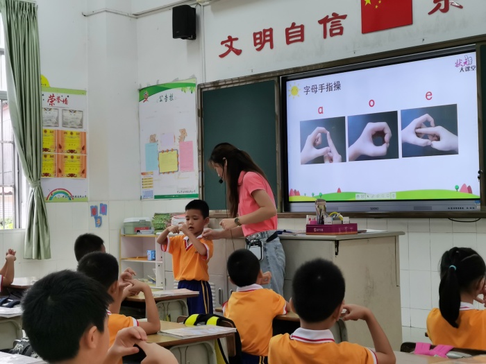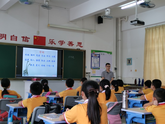 二年級共進組周凱琪老師上課內容是識字2《樹之歌》。周老師是根據兒童詩特點,創(chuàng)設情境,激發(fā)學生的學習興趣,帶領學生讀書、識字。一年級共進組黃南婷老師上課內容是《a o e》,黃老師運用多種教學手段讓學生在輕松愉快的課堂中掌握知識。如利用故事、根據課本上的插圖、以做手勢的形式、借助兒歌,識記字形。四年級共進組廖賢芬老師上的是《夜間飛行的秘密》第一課時,生字詞的學習、主要內容的概括等,第一課時目標任務十分具體。五年級共進組賴云怡老師上課內容是《摔跤》,先閱讀片段,四人小組合作學習,緊扣人物的動作,了解主人公鮮明的特點,最后進行小練筆,續(xù)寫第二次比賽的過程。六年級共進組盧凱耀老師上的是《燈光》,首先,抓題眼,初識英雄形象。其次,,四人小組合作學習,抓句子,提升英雄形象,感受到郝副營長關心下一代和不怕犧牲的品質。