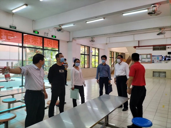 為進(jìn)一步落實(shí)校園疫情常態(tài)化工作,及時發(fā)現(xiàn)問題、快捷整改,堵塞漏洞、補(bǔ)齊短板,3月15日下午,中山市校園疫情防控工作督導(dǎo)組來到英才學(xué)校開展督導(dǎo)檢查工作。南區(qū)街道教育和體育事務(wù)中心主任梁志東,專干陳清新、彭?xiàng)詈?,英才學(xué)校校長劉訓(xùn)強(qiáng)等陪同。