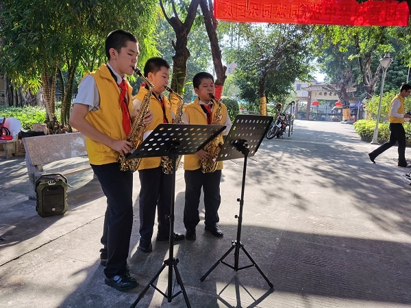 志愿者們?cè)诹挚∮⒏毙iL(zhǎng)、團(tuán)委副書記鄭振輝老師的帶領(lǐng)下,和老人們親切地聊起天來,他們悉心地詢問老人們的日常生活起居,希望他們保重身體、快樂生活。一幕幕溫馨的場(chǎng)景,讓這里的老人們感受到親人般的溫暖,讓在場(chǎng)的每個(gè)人都被那種濃濃的溫情所包圍?;顒?dòng)中,學(xué)生志愿者為老人們準(zhǔn)備了豐富多彩的節(jié)目,既有生動(dòng)的手風(fēng)琴演奏,也有動(dòng)聽的薩克斯表演,焦一檬、姚睿同學(xué)分別演唱了歌曲《靜夜思》、《木蘭詩》,用歌聲向老人們表達(dá)節(jié)日的問候。老人們聽得舒心,看得開心。隨后,學(xué)生志愿者們?cè)诶蠋焸兊闹敢聦サ奈繂柶贩謩e送到院內(nèi)每一位老人手中,并祝福老人們身體健康、長(zhǎng)壽快樂。老人們感嘆道:“孩子們?yōu)槲覀儙砹撕芏鄽g樂和溫暖,真的很感謝。”