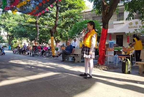 為進(jìn)一步弘揚(yáng)孝老愛親、尊老愛幼的傳統(tǒng)美德,引導(dǎo)學(xué)生們尊重老人,孝敬長(zhǎng)輩,學(xué)會(huì)感恩,僑中英才學(xué)校以“重陽節(jié)”為契機(jī),團(tuán)委、少先隊(duì)組織師生志愿者服務(wù)隊(duì)帶著濃濃的真情,于10月26日下午來到環(huán)城頤老院,為老人們送上節(jié)日的祝福與問候。