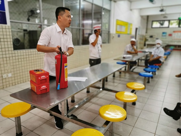 培訓(xùn)過程中,黃助理重點(diǎn)講述了廚房加工間電器、燃?xì)?、液體、固體等火災(zāi)的成因和預(yù)防,要求食堂工作人員做到“學(xué)生在宿舍不開火”(含大功率電器設(shè)備)的剛性規(guī)定。并根據(jù)食堂工作崗位的性質(zhì),要求食堂全體員工要落實(shí)消防安全責(zé)任,及時(shí)排查消防安全隱患,制定消防安全操作規(guī)程,完善火災(zāi)應(yīng)急工作機(jī)制,扎扎實(shí)實(shí)做好消防安全工作。除此,黃助理講解了食堂消防器材如滅火器、滅火毯等的正確使用方法,初級(jí)火災(zāi)的正確處置,緊急情況下的應(yīng)急疏散等內(nèi)容,并現(xiàn)場(chǎng)示范了滅火器材的使用方法和操作技巧。
