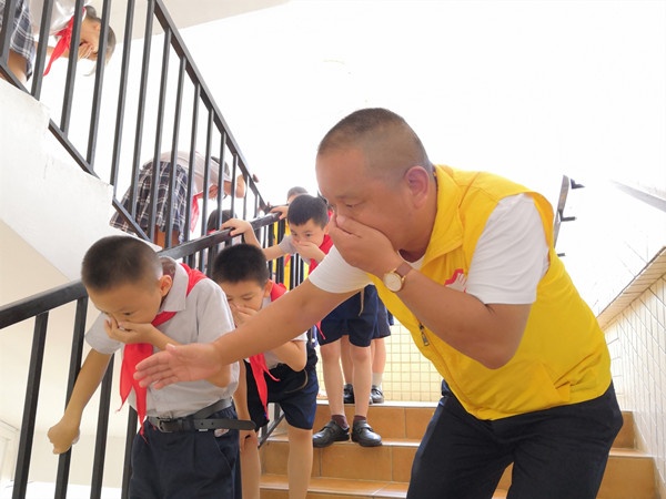 為確保這次演練活動順利進行,學校制定了詳細的消防疏散演練方案,對各宿舍樓層逃離的路線及每位生活老師的職責、每層樓梯口的值班老師安排等工作都作了明確的規(guī)定。當日下午13:40分,當聽到學校的警報聲后,學生們在生活老師的引導下,用手或毛巾捂住口鼻,緊張、有序、快速地撤離宿舍樓,按預定的疏散路線撤離到安全位置并迅速集合,整場演練活動緊張、有序,整個演練活動達到了預期目標。