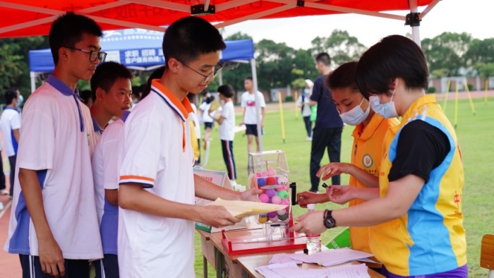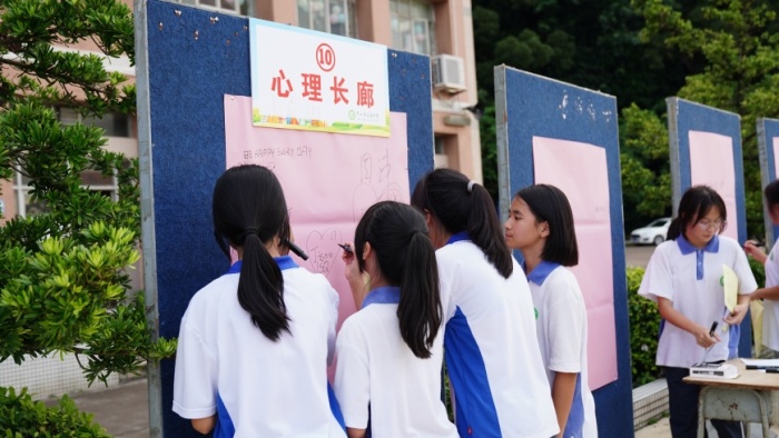 活動伊始,由部分初一學(xué)生表演節(jié)目校園原創(chuàng)MV《我們》及心理活力操的展示。接著,三角中學(xué)德育處副校長覃子湘宣布活動正式開始。此次心理游園會共由12個攤位組成,同學(xué)們手持游園卡,每完成一個項目即可獲得相應(yīng)的印章,活動過程中每個學(xué)生集滿5個章即可兌換一份小禮品。本次活動旨在讓同學(xué)們通過有趣的心理素質(zhì)拓展游戲釋放壓力,消除負面情緒,汲取治愈自我的心理能量。