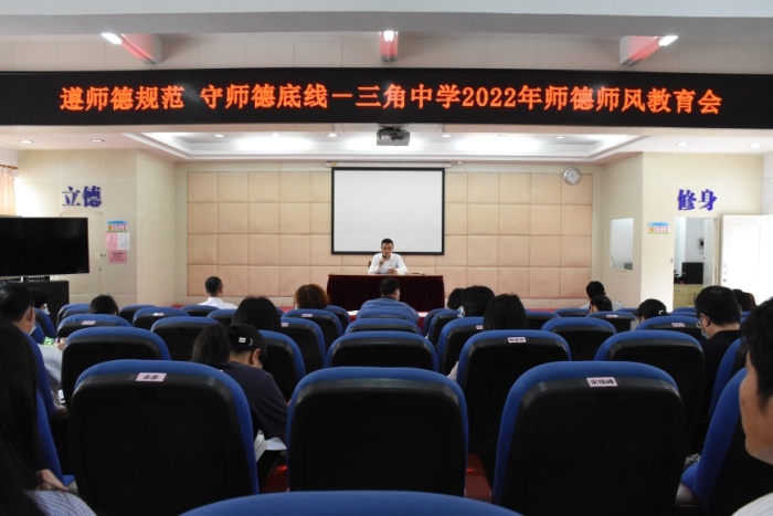 師以德為本,育師先育德。為進一步加強教師隊伍師德師風建設,樹立嚴格自律、為人師表的良好教師形象,努力打造家長放心、社會滿意的高素質(zhì)、專業(yè)化教師隊伍,3月17日下午,三角中學在報告廳召開了師德師風教育會,全校教師參加了本次會議。