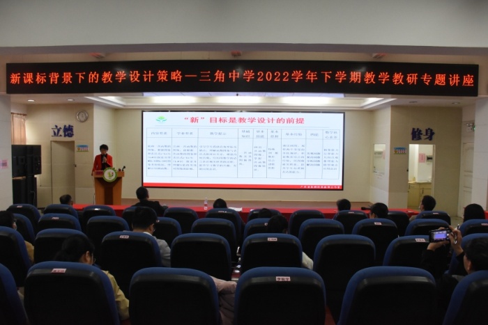 教書路上,孜孜不倦,執(zhí)著與幸福共存;育人途中,諄諄教誨,智慧與情懷同在。為進一步深化課程改革,立足新課堂,落實新課標,用好新教材,探討教學改革新路徑,構建課堂建設的新樣態(tài),再進一步提高三角中學教師的專業(yè)水平和教育教學能力,全面提高教育教學質量。2月4日下午,三角中學開展題為《新課標背景下的教學設計策略》的講座。