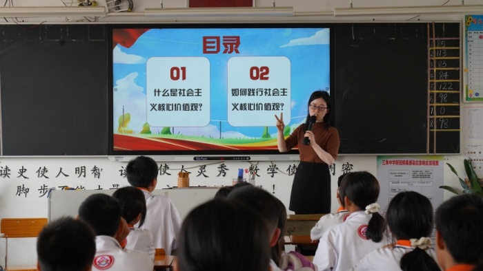 社會主義核心價值觀是社會主義核心價值體系的內(nèi)核,體現(xiàn)社會主義核心價值體系的根本性質(zhì)和基本特征,反映社會主義核心價值體系的豐富內(nèi)涵和實踐要求。為弘揚(yáng)社會主義核心價值觀,加強(qiáng)對中小學(xué)生社會主義核心價值觀的教育引導(dǎo),落實立德樹人的根本任務(wù),3月9日下午,三角中學(xué)開展“踐行社會主義核心價值觀,爭做文明中小學(xué)生”主題班會活動。