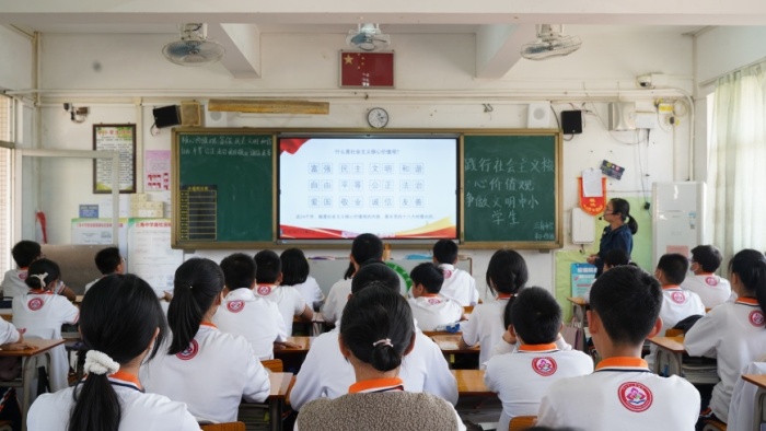班會課上,班主任們從理論實際出發(fā),從什么是社會主義核心價值觀和如何踐行社會主義核心價值觀兩個方面對社會主義核心價值觀基本內(nèi)容進(jìn)行圖文并茂地生動講解,并深刻闡釋社會主義核心價值觀的內(nèi)涵與意義,幫助學(xué)生熟記于心,踐之于行。