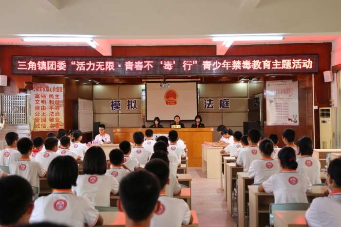 為深入開展毒品預(yù)防宣傳教育,在青少年群體內(nèi)形成自覺遠(yuǎn)離毒品的有效屏障,6月21日下午,沙欄中學(xué)聯(lián)合三角鎮(zhèn)團(tuán)委積極開展了“活力無(wú)限·青春不‘毒’行”——青少年禁毒教育主題活動(dòng)”。本次活動(dòng)旨在加強(qiáng)學(xué)校禁毒宣傳教育工作,不斷增強(qiáng)學(xué)生識(shí)毒、防毒、拒毒的意識(shí)和能力,提高學(xué)生自我保護(hù)意識(shí)。
