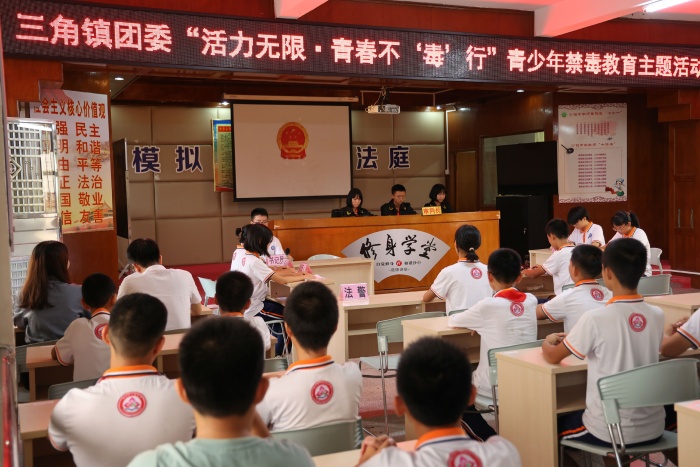 本次活動(dòng)采用模擬法庭形式,以普及禁毒法律知識(shí)貫穿全過程,由同學(xué)們親自出演案件中的法官、公訴人、被告人、辯護(hù)人、法警等角色,為同學(xué)們現(xiàn)場(chǎng)演繹青少年販毒案件審理全過程。學(xué)生在體驗(yàn)法庭審理案件的緊張氛圍之余,深刻認(rèn)識(shí)到毒品的危害性以及碰觸毒網(wǎng)必然受到法律的制裁。