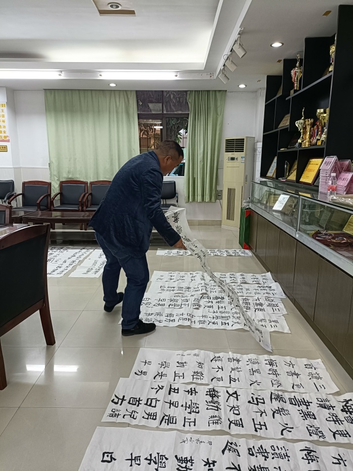 比賽結(jié)束后,評(píng)委們對(duì)書法作品進(jìn)行評(píng)選。