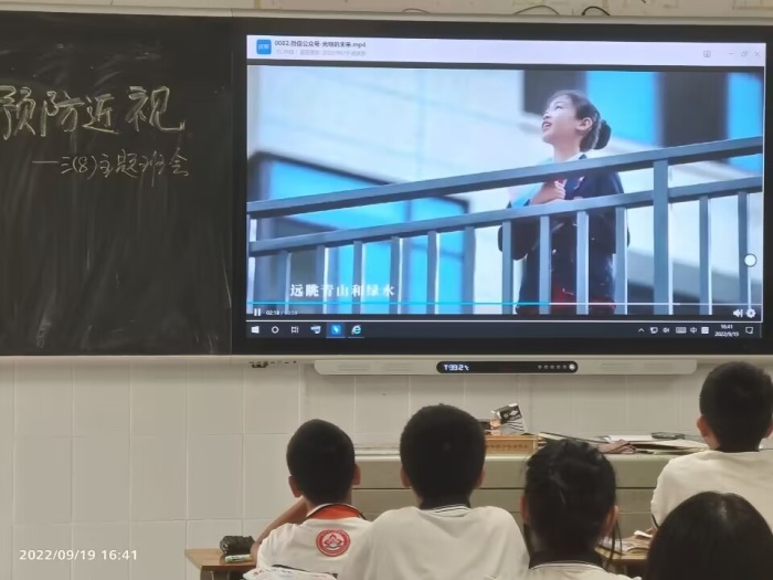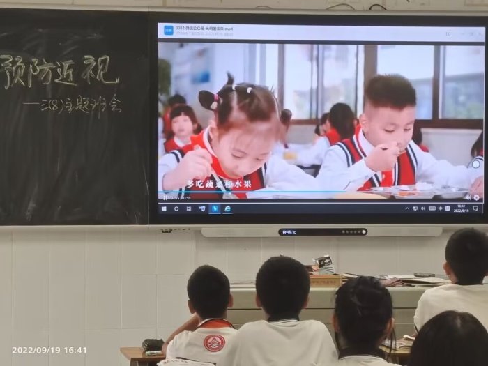 在班會上,同學(xué)們了解了什么是近視、近視的危害和保護(hù)眼睛的有關(guān)方法,例如:養(yǎng)成良好的用眼習(xí)慣、注意用眼時間、注意日常坐姿、課間走出課室眺望遠(yuǎn)方、定期檢查視力等,還一起觀看了視頻“我有一個夢想——擁有一雙明亮的眼睛”。同學(xué)們反響熱烈,紛紛表示以后會注意保護(hù)好自己的眼睛。