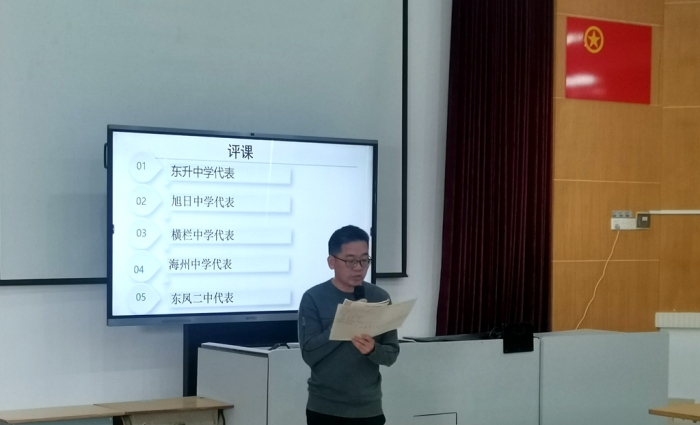其次,兄弟學(xué)校代表進(jìn)行了評(píng)課,紛紛對(duì)本節(jié)課給予了高度的肯定。東升中學(xué)代表、旭日中學(xué)代表、橫欄中學(xué)代表、海洲中學(xué)代表、東鳳二中代表依次上臺(tái)發(fā)表了對(duì)本節(jié)課的看法和見(jiàn)解,并交流心中在教學(xué)中的疑惑,聚團(tuán)隊(duì)之力,攻克之。