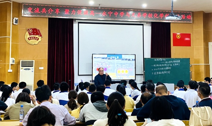 新年伊始,萬(wàn)象更新,為了加強(qiáng)初中化學(xué)教學(xué)的交流,推動(dòng)化學(xué)課高質(zhì)量的課堂教學(xué)和中考備考,3月4日上午,“交流共分享,聚力促提高”化學(xué)科交流活動(dòng)在永寧中學(xué)階梯室舉行。小欖鎮(zhèn)教體文旅局曾文春副主任、王庚兒專干,古鎮(zhèn)海洲中學(xué)敖萬(wàn)軍校長(zhǎng),永寧中學(xué)陳清茂校長(zhǎng),中山市橫欄中學(xué)孔凡亮副校長(zhǎng),小欖鎮(zhèn)東升初中馮釗順副校長(zhǎng),以及小欖鎮(zhèn)東升中學(xué)、小欖鎮(zhèn)旭日中學(xué)、中山市橫欄中學(xué)、古鎮(zhèn)海洲中學(xué)、東鳳鎮(zhèn)第二中學(xué)、中山市永寧中學(xué)等學(xué)?;瘜W(xué)老師參加此次活動(dòng)?;顒?dòng)由小欖鎮(zhèn)化學(xué)教研中心組組長(zhǎng)黃瑞芳老師主持,主要有四個(gè)環(huán)節(jié)。