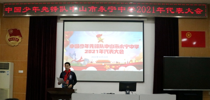 12月15日下午,中山市永寧中學(xué)在學(xué)校階梯教室召開中國(guó)少年先鋒隊(duì)2021年代表大會(huì)。出席本次會(huì)議的領(lǐng)導(dǎo)、嘉賓有:學(xué)校黨支部書記、少工委主任陳清茂校長(zhǎng)、黨支部副書記楊青華副校長(zhǎng)、德育處戴放良主任、少工委副主任、大隊(duì)輔導(dǎo)員羅結(jié)晶副主任、團(tuán)委副書記陳煥然老師、團(tuán)委委員范順登老師、包小滿級(jí)長(zhǎng)、鐘紅娟級(jí)長(zhǎng)、初一年級(jí)家委會(huì)會(huì)長(zhǎng)張驅(qū)先生、副會(huì)長(zhǎng)胡權(quán)華先生、副會(huì)長(zhǎng)陳耀炳先生,以及優(yōu)秀中隊(duì)輔導(dǎo)員教師代表。陳煥然副書記主持大會(huì)。