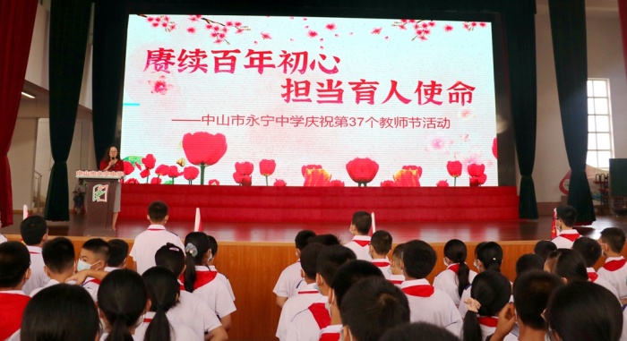 2021年9月10日上午,永寧中學(xué)在學(xué)校體育館隆重舉行主題為“賡續(xù)百年初心,擔(dān)當(dāng)育人使命” 慶祝第37個(gè)教師節(jié)主題活動(dòng)。