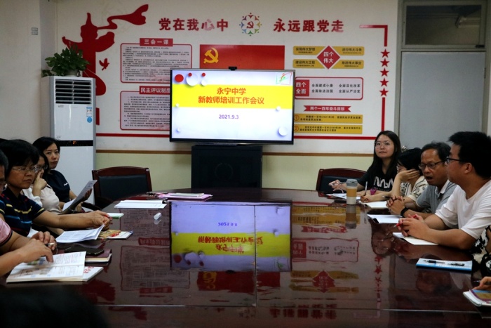 2021年9月3日,新學(xué)期正式開(kāi)學(xué)的第三天,中山市永寧中學(xué)在黨群活動(dòng)室舉行新教師培訓(xùn)活動(dòng)。培訓(xùn)內(nèi)容主要有校史教育、師德教育、幫帶要求等。參加培訓(xùn)活動(dòng)的校領(lǐng)導(dǎo)有陳清茂校長(zhǎng)、陳華梁副校長(zhǎng)、龍小紅主任、王志珍副主任以及相應(yīng)的學(xué)科指導(dǎo)老師、班主任指導(dǎo)老師。