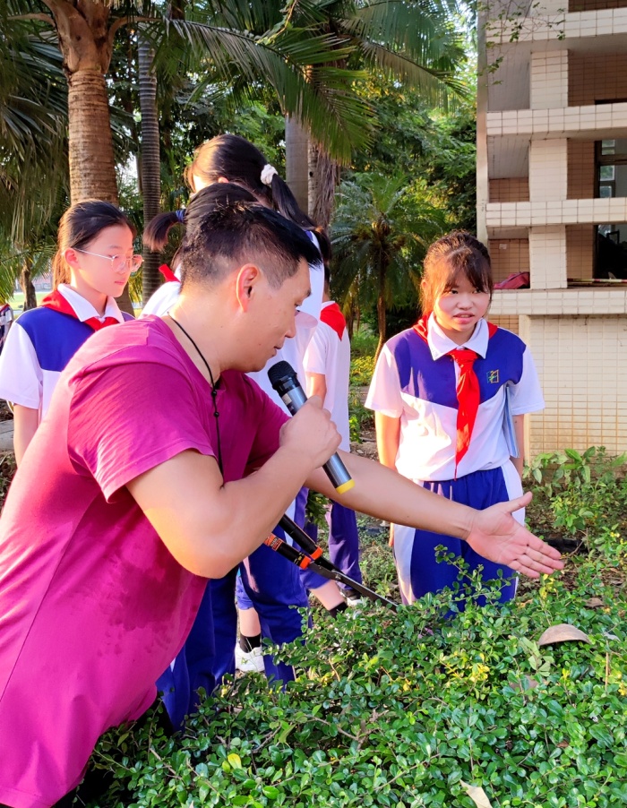 在校園東西角上有一景致優(yōu)美,綠意盎然的“農(nóng)業(yè)莊園”——?jiǎng)趧?dòng)教育種植實(shí)踐基地,熱鬧非凡,各班種植小組的學(xué)生們?cè)趧趧?dòng)教育實(shí)踐指導(dǎo)老師的指導(dǎo)下,鋤地、除草、澆水、施肥、撿落葉、精心養(yǎng)護(hù)著本班的種植基地,有的采摘蔬菜或瓜果等,收獲上學(xué)期勞動(dòng)成果,忙碌并快樂(lè)著。其實(shí),平時(shí)各班輪值的同學(xué)一有時(shí)間就會(huì)走進(jìn)種植實(shí)踐基地,或澆水,或松土,或捉蟲(chóng),隔三差五地施施肥?;蛘呤裁匆膊蛔?,只是站立基地一角,看勤勞的蜜蜂在花葉間飛舞、采蜜,聽(tīng)不知名的昆蟲(chóng)藏身何處清幽地鳴唱。清新的泥土氣息,淡雅的蔬菜清香,讓同學(xué)們?cè)诟形騽趧?dòng)中的美,體驗(yàn)勞動(dòng)的樂(lè)趣。