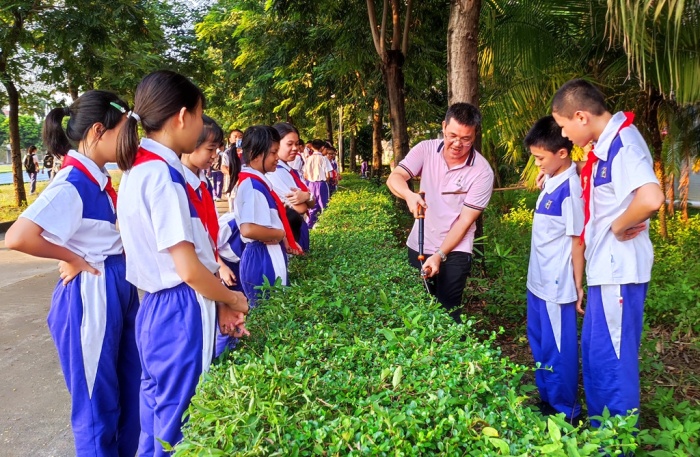 在校園的園藝基地,同樣熱鬧有序,同學(xué)們以班級(jí)為單位分小組分散開(kāi),在班主任和指導(dǎo)老師的指引下,撿落葉枯枝、除雜草、修剪花木。瞧!同學(xué)們撿落葉時(shí)的樣子多認(rèn)真,彎下身來(lái)仔細(xì)尋找,有的撿了滿滿的一筐,有的還撿到了許多的樹(shù)枝條,還有的發(fā)現(xiàn)了被遺落在角落的片片塑料袋......雖然雜草很多、垃圾很多,很臟很亂,但是每個(gè)同學(xué)都能仔細(xì)尋找到每個(gè)角落,他們不怕臟,不怕累,都積極地參與其中。修剪花木的同學(xué)更是像模像樣,手拿著大剪刀,商量、測(cè)準(zhǔn)、用力、清理,個(gè)個(gè)都像園藝師傅。雖然陽(yáng)光仍舊刺眼,但也阻止不了同學(xué)們的熱情,看到整潔的基地,干凈的園區(qū),同學(xué)們露出了開(kāi)心的笑容。