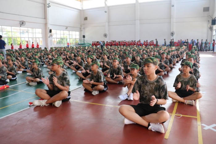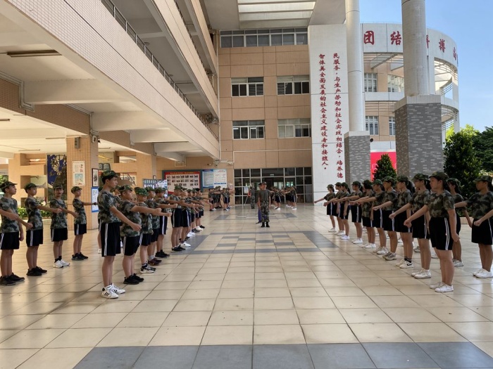 陳校長對同學(xué)們提出了幾點(diǎn)希望:1、安全第一。2、要有吃苦精神,要有戰(zhàn)勝困難的信心,以飽滿的精神和樂觀的態(tài)度參加訓(xùn)練,不嬌氣,不怕苦,不怕累,戰(zhàn)高溫,斗酷暑,流汗不流淚,再累不掉隊(duì),嚴(yán)格訓(xùn)練,力爭取得優(yōu)異的成績。 3、要發(fā)揚(yáng)集體主義和愛國主義精神。4、要敬畏紀(jì)律,嚴(yán)守規(guī)矩,認(rèn)真上好每一節(jié)訓(xùn)練課,要向教官學(xué)習(xí)軍人的高尚品質(zhì)、雷厲風(fēng)行的作風(fēng)、嚴(yán)明的組織紀(jì)律。希望同學(xué)們以最認(rèn)真的學(xué)習(xí)態(tài)度、最飽滿的精神面貌,磨練出自己最堅(jiān)韌的意志品質(zhì),最優(yōu)秀的行為習(xí)慣,為三年的初中生活打下堅(jiān)實(shí)的基礎(chǔ)。