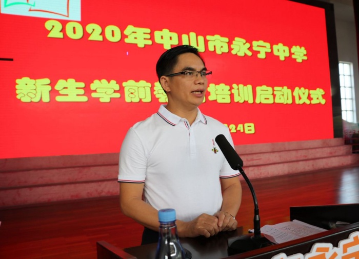 本次新生學(xué)前教育培訓(xùn)活動得到了小欖鎮(zhèn)教體局、永寧社區(qū)、九州基社區(qū)等的大力支持!小欖鎮(zhèn)教育事務(wù)指導(dǎo)中心鄧永飛副主任、永寧社區(qū)社教辦麥林坤主任、九州基社區(qū)社教辦顏鑒光主任、中山市永寧中學(xué)陳清茂校長、陳華梁副校長、楊青華副校長、以及在校的各部門主要領(lǐng)導(dǎo)和全體初一班主任出席了啟動儀式。德育處戴放良主任主持啟動儀式。
