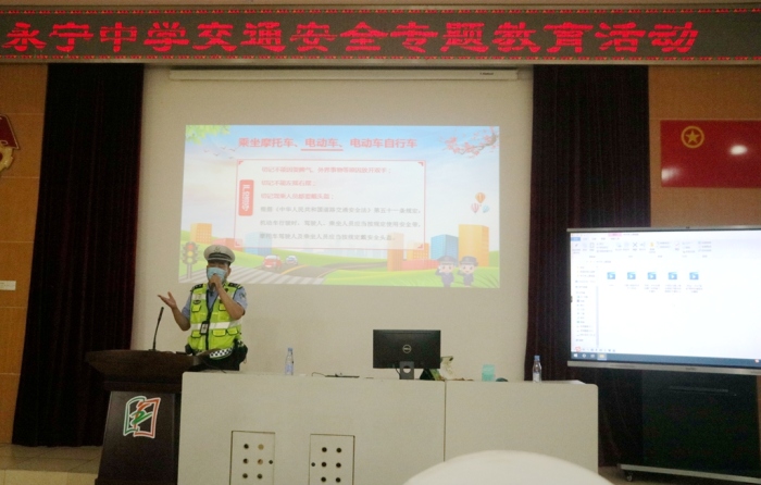 為普及交通安全法規(guī)知識(shí),提高學(xué)校師生交通安全意識(shí)及自我保護(hù)能力,2022年4月25日,永寧中學(xué)在階梯室舉行了交通安全專題教育活動(dòng)。小欖交警大隊(duì)民警、永寧治保會(huì)交通勸導(dǎo)站的工作人員以及永寧中學(xué)師生參加了此次活動(dòng)。