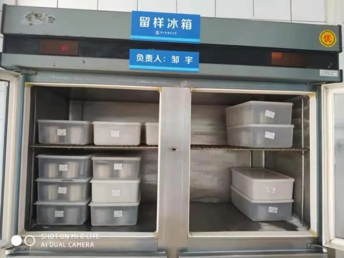 嚴把食品留樣、原料存儲關。食堂食品做到留樣規(guī)范,標示出所留樣食品的品名、留樣時間、留樣數(shù)量、留樣人,并做到專人、專管、專鎖。切實做好食材儲存工作,在存儲時做到環(huán)境干凈、衛(wèi)生;存儲溫度符合食品存放要求等。