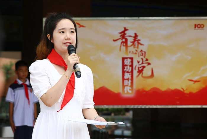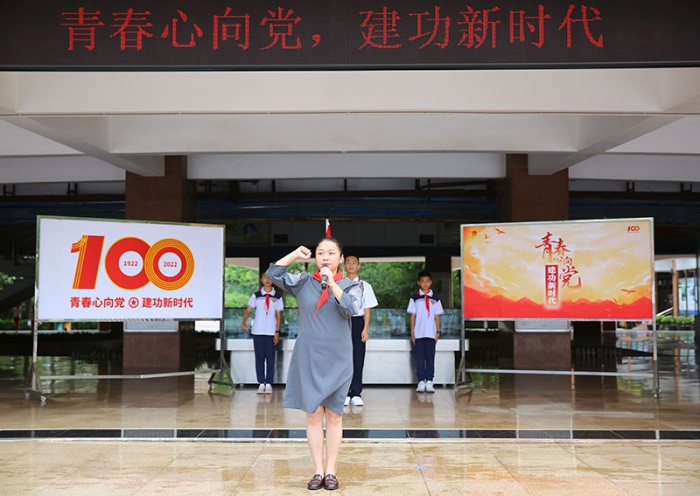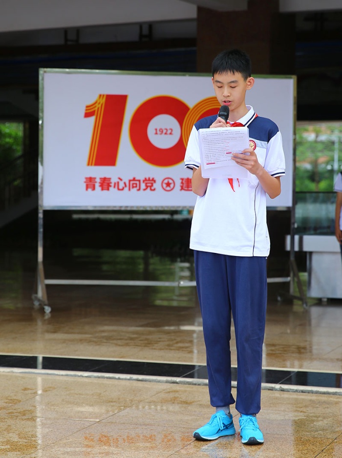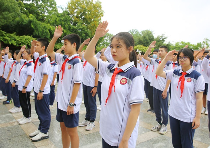 中學(xué)部團(tuán)委副書記李凌霄希望今天離隊的同學(xué)們謹(jǐn)記少年先鋒隊入隊誓詞,做有志青年,做進(jìn)取青年,做奮斗青年,通過自己的努力,早日加入中國共產(chǎn)主義青年團(tuán),向著更遠(yuǎn)大的目標(biāo)前進(jìn)。