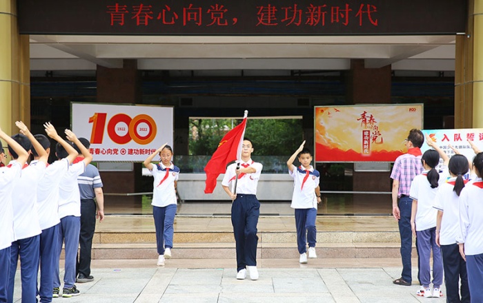 “我是中國少年先鋒隊隊員,我在隊旗下宣誓:我熱愛中國共產(chǎn)黨,熱愛祖國……”5月30日,在卓雅外校少先隊員離隊儀式上,257名即將年滿離隊的少先隊員重溫入隊誓詞,最后一次握拳呼號,高唱少年先鋒隊隊歌,告別中國少年先鋒隊。