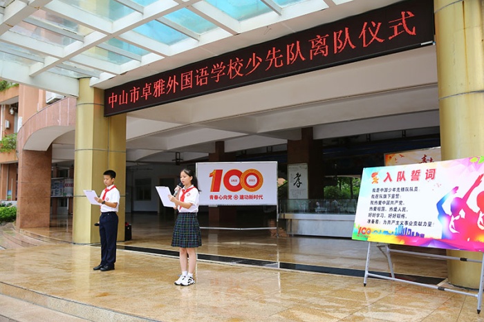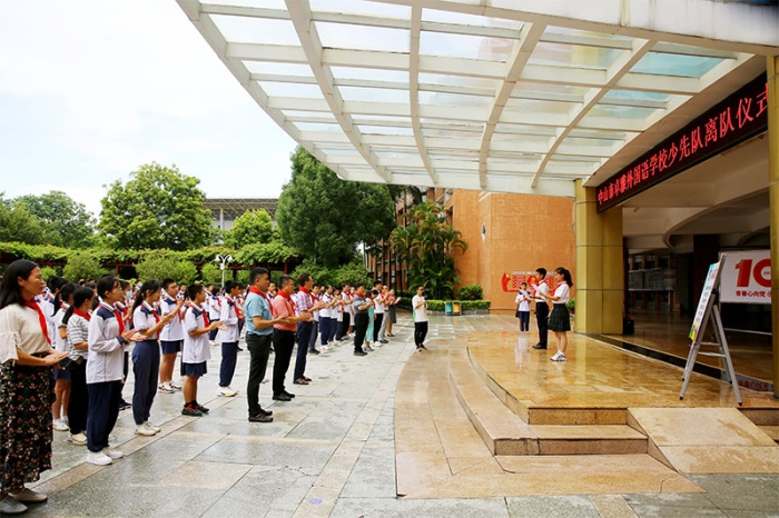 卓雅外校黨支部書記龍起達(dá)、校長李雄杰、副校長李文、小學(xué)部學(xué)生處主任兼少工委總輔導(dǎo)員楊文娟、中學(xué)部團(tuán)委書記李凌霄等參與活動,共同見證隆重?zé)崃摇⒁饬x非凡的離隊儀式。