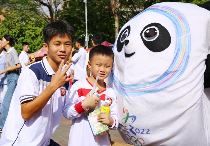 為了吸引更多的顧客,同學(xué)們或身穿漂亮的漢服撐著油紙傘,或cos成各類動漫人物,或扮成可愛的冰墩墩、小黃鴨,“走街串巷”兜售商品。“我是自學(xué)的制作氣球小狗,小朋友們很喜歡,一個一只的氣球小狗30秒就可以制作完成?!卑四昙壘丛椿瑢W(xué)扮成小丑模樣,面前排著長隊等待可愛的氣球小狗。初中部鄭嘉豪同學(xué)是第4年參加愛心商會,他說,從小學(xué)到初中一直都有參與愛心商會活動,每年都特別期待,在買到中意商品的同時也獻出了愛心,非常有意義。