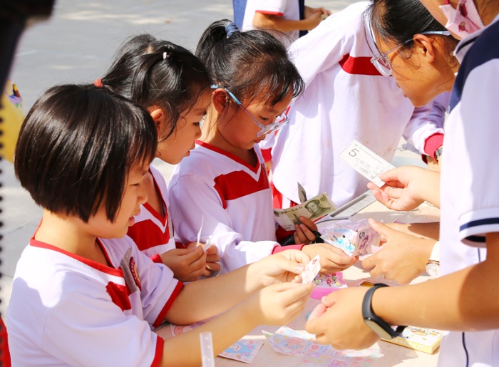 本屆愛心商會共設(shè)40個攤位,主要經(jīng)營傳統(tǒng)公益類產(chǎn)品、藝術(shù)類產(chǎn)品、文化衍生類產(chǎn)品、食品及校園主題特色產(chǎn)品?!吧虝蓖ㄟ^模擬社會商品經(jīng)營模式,讓學(xué)生切身實踐,從而了解商品經(jīng)營的流程和特點,活動完全依照市場實況進行,各班通過“競拍攤位”來獲得經(jīng)營資格后,還需簽訂“商會合同書”。此外,所有商家都必須給消費者提供“稅票”,交納一定的“稅款”。