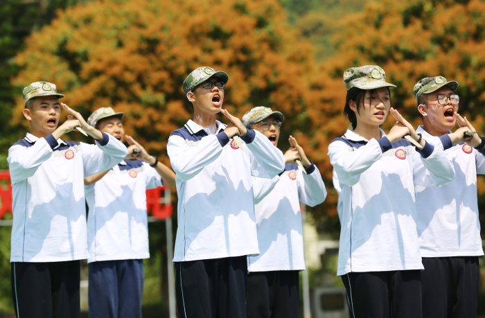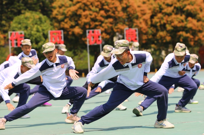 3月6日下午,卓雅外校高一年級(jí)軍訓(xùn)結(jié)業(yè)典禮在五桂山國防教育訓(xùn)練基地舉行,500余名學(xué)生組成的匕首操、軍體拳、手語操以及特戰(zhàn)方陣在會(huì)操表演中先后登場,他們精神飽滿、氣勢磅礴、口號(hào)嘹亮,經(jīng)過七天的軍事化訓(xùn)練,圓滿完成了軍訓(xùn)任務(wù)順利結(jié)業(yè)。董子博、邱智軒、黃振華等120名同學(xué)被評為“優(yōu)秀學(xué)員”,軍訓(xùn)3班、5班、9班榮獲軍訓(xùn)成果評比特等獎(jiǎng)。國防教育訓(xùn)練基地部長鄧海強(qiáng)、卓雅外校高中部校長畢文龍等出席結(jié)營儀式并為優(yōu)秀集體及個(gè)人頒獎(jiǎng)。