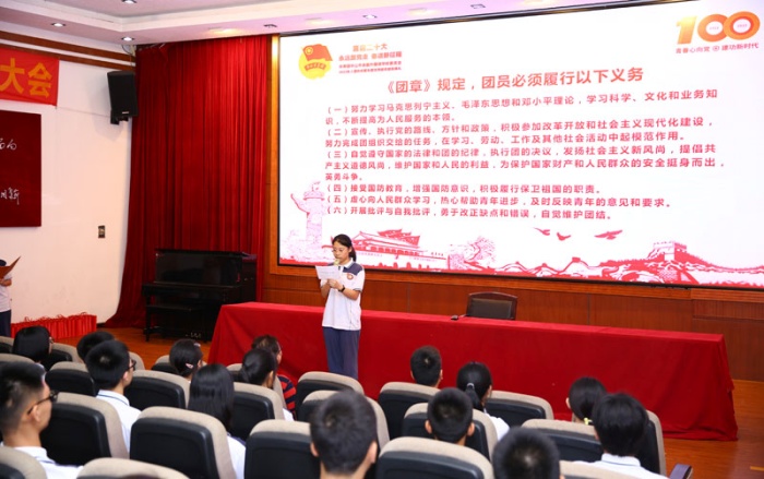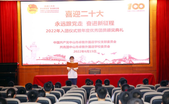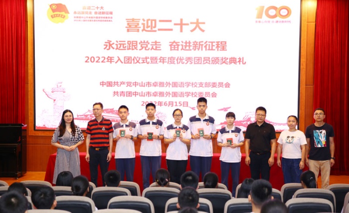 為貫徹落實習近平總書記在慶祝中國共產(chǎn)主義青年團成立100周年大會上的重要講話精神,聚焦抓好黨的事業(yè)后繼有人這個根本大計,6月15日晚,卓雅外校舉行共青團入團儀式暨優(yōu)秀團員表彰大會,胡蓉、李鈺妍等44名同學加入中國共產(chǎn)主義青年團,張家盈、周江涵等44名優(yōu)秀團員受表彰。